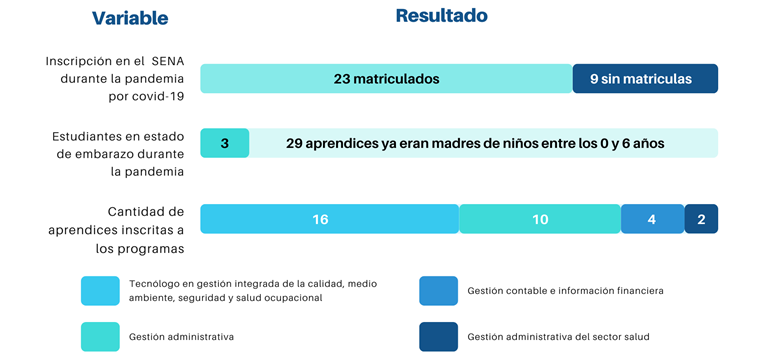 La evidencia cuantitativa reveló un aumento significativo en la participación de las mujeres en los programas del SENA durante los últimos años. Cuando se pretendió analizar si la maternidad era un riesgo de deserción, se advirtió que esta variable no estaba caracterizada en el aplicativo interno de la institución, por ende, a pesar de su importancia, esta situación no ha sido sistemáticamente incorporada en análisis previos (Moreno Cabrera et al., 2024) y este es un dato para tener en cuenta.
